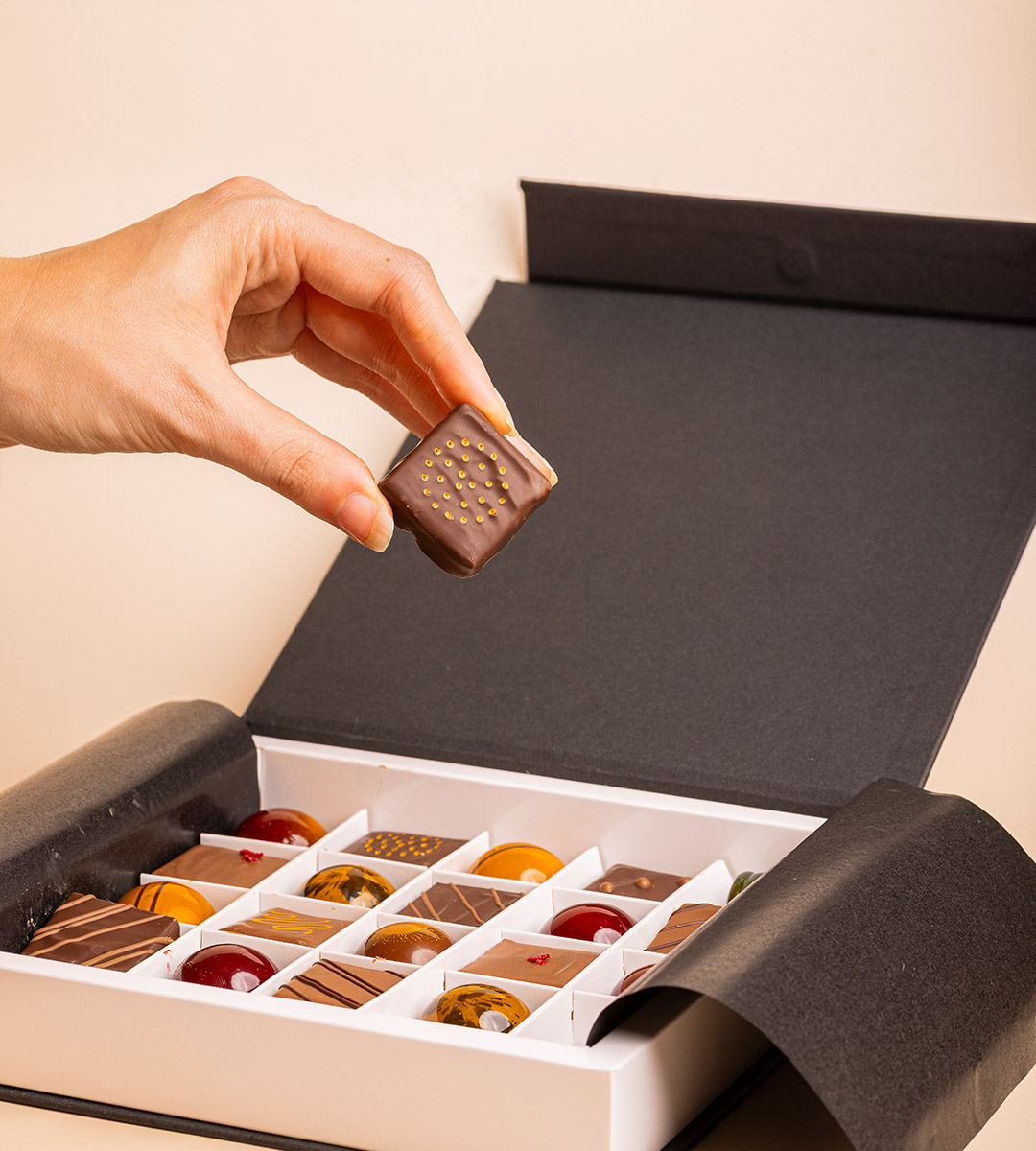 Estes bombons combinam o sabor profundo do chocolate negro com uma textura cremosa.