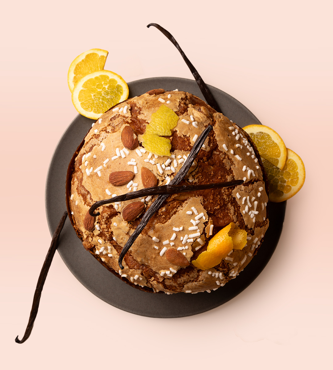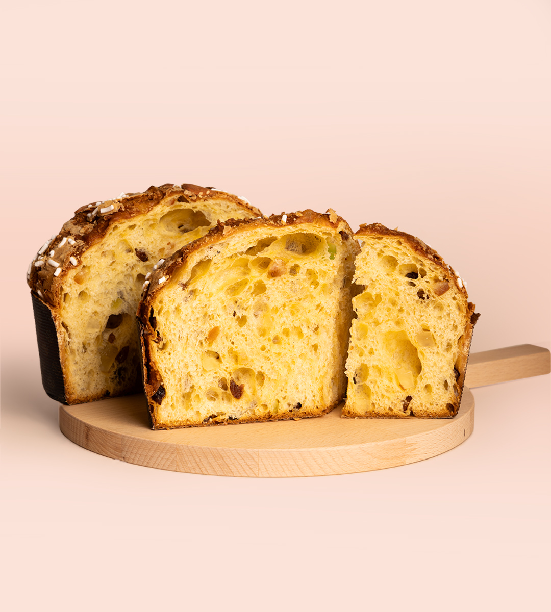 Farinha de trigo tipo 00, Sultanas, Açúcar, Manteiga (leite), Ovos (gemas), Cubos de laranja cristalizada, Cubos de limão cristalizado, Água, Fermento natural (levito), Pasta de laranja, Raspa de limão, Mel, Baunilha, Sal.