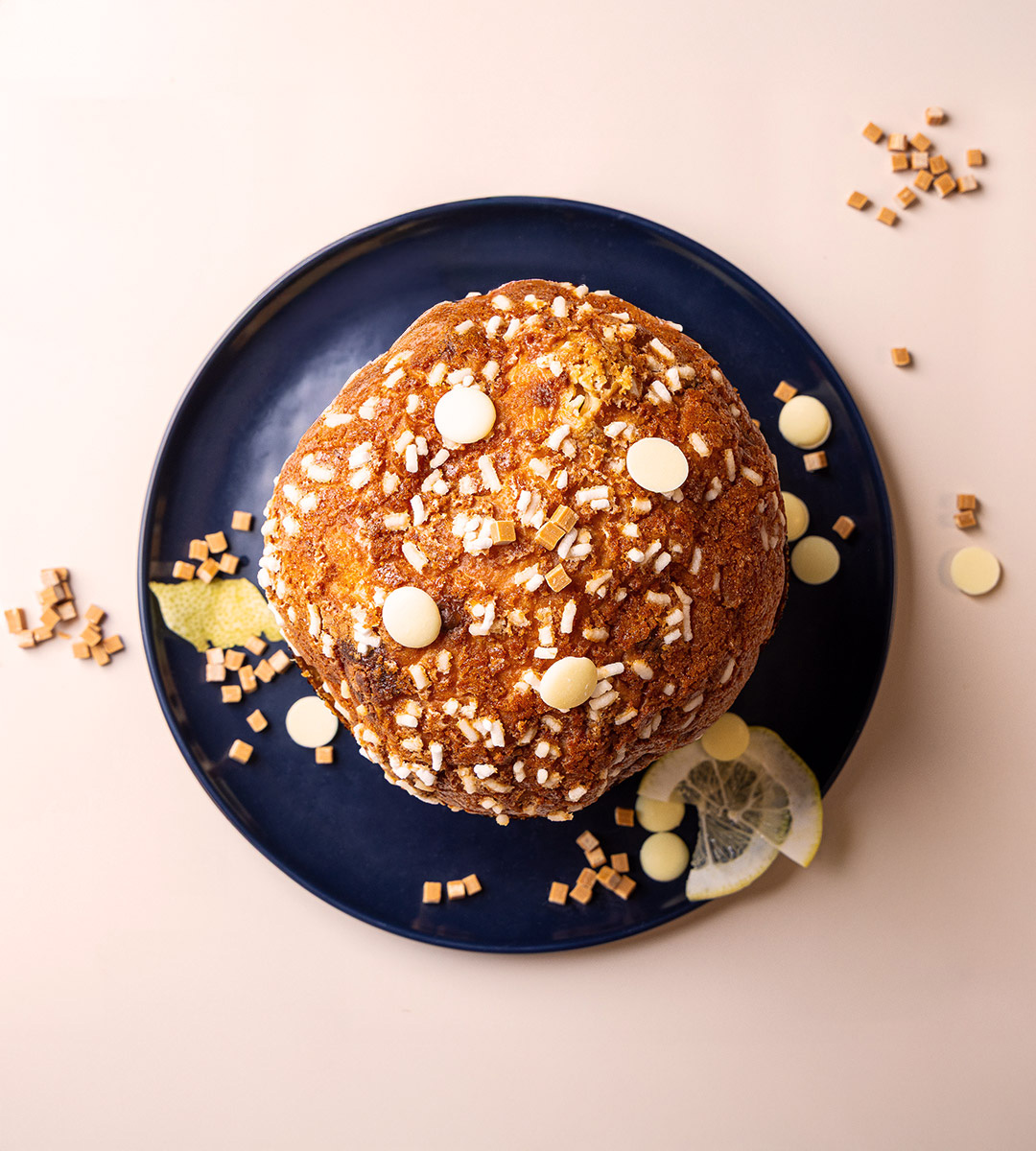 Este panettone combina a leveza da massa com o toque cítrico do limão e a cremosidade do caramelo.